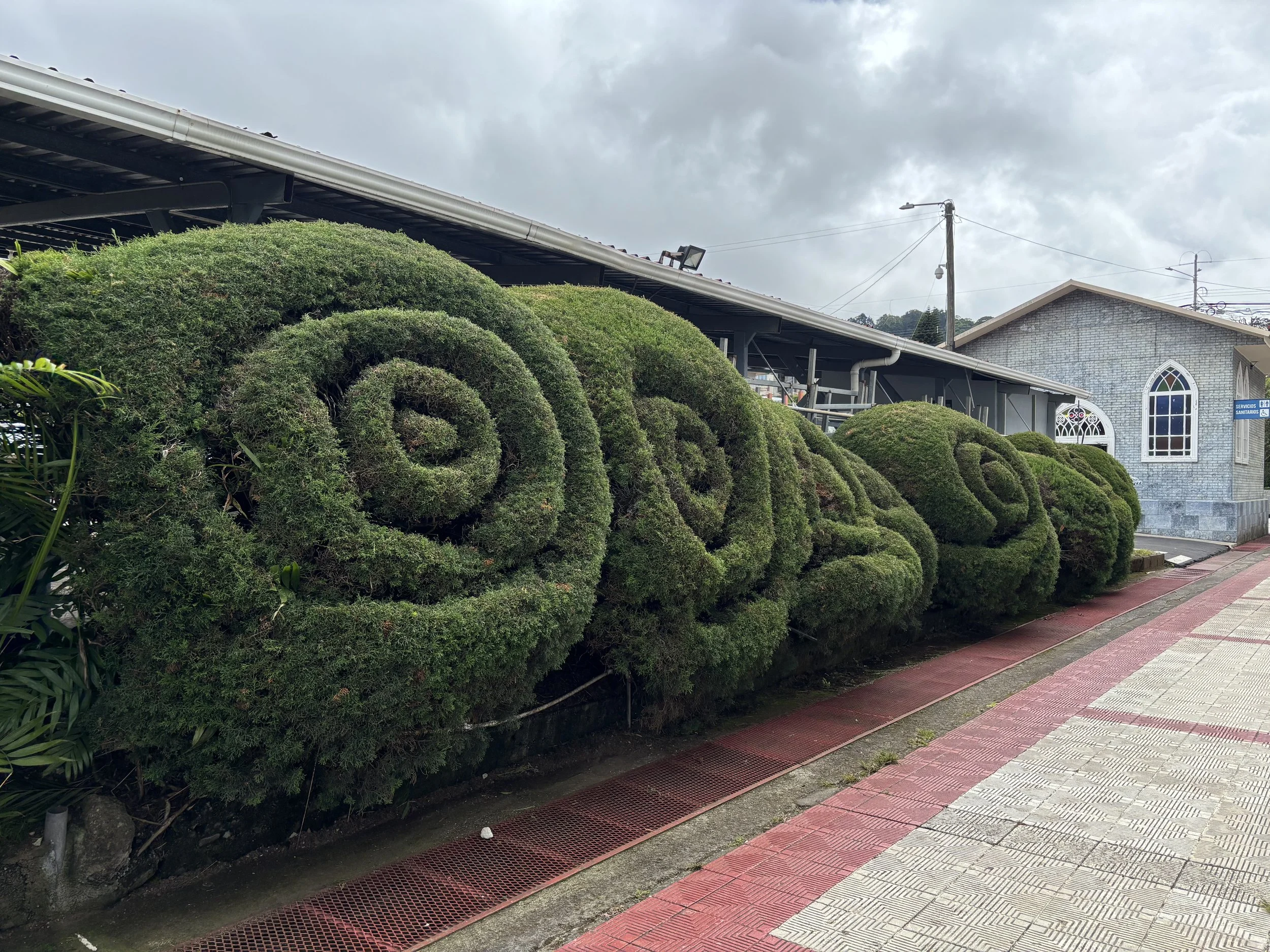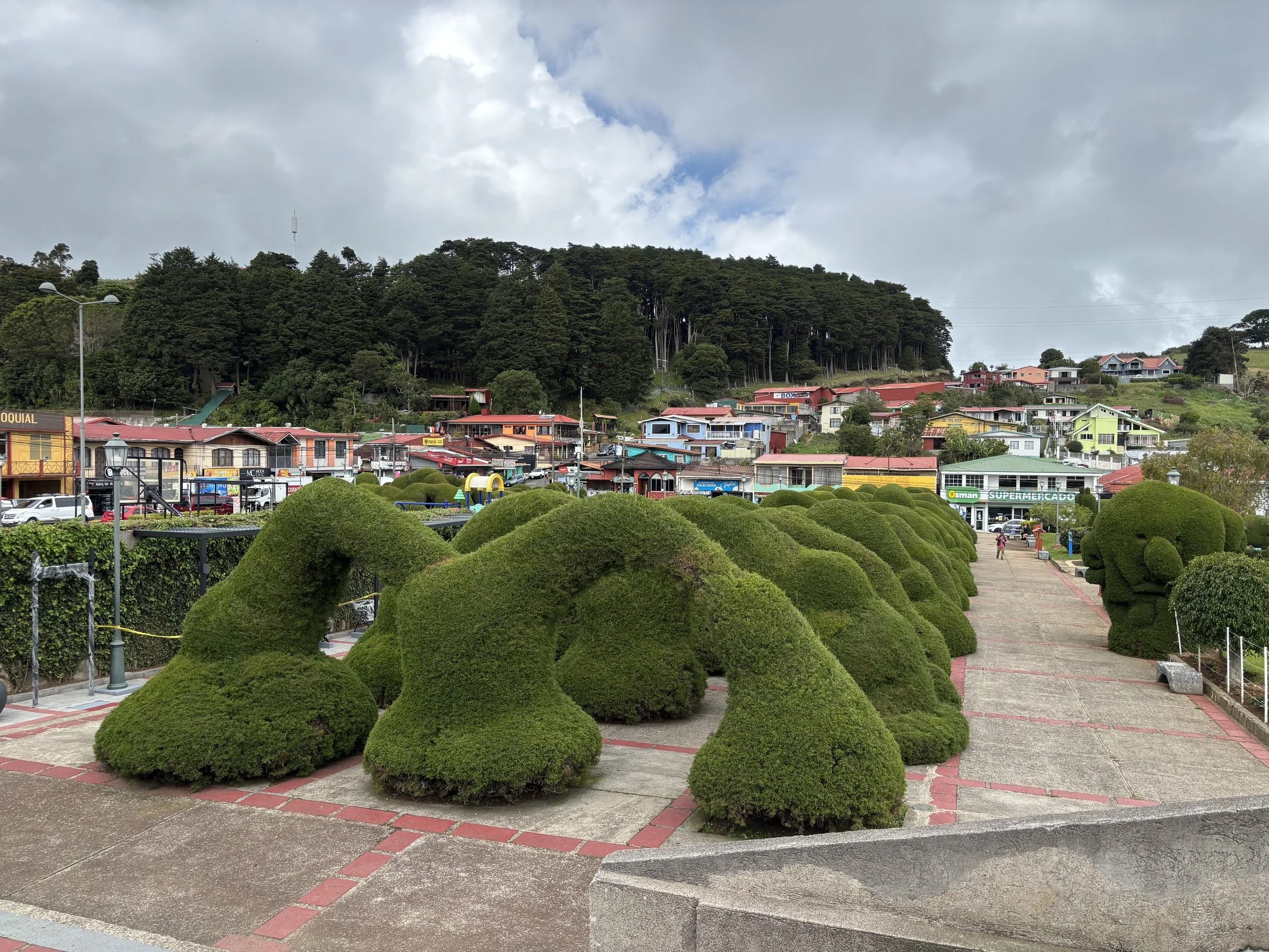 We stopped briefly in a tiny town whose square was filled with large, sometimes comical, topiary.