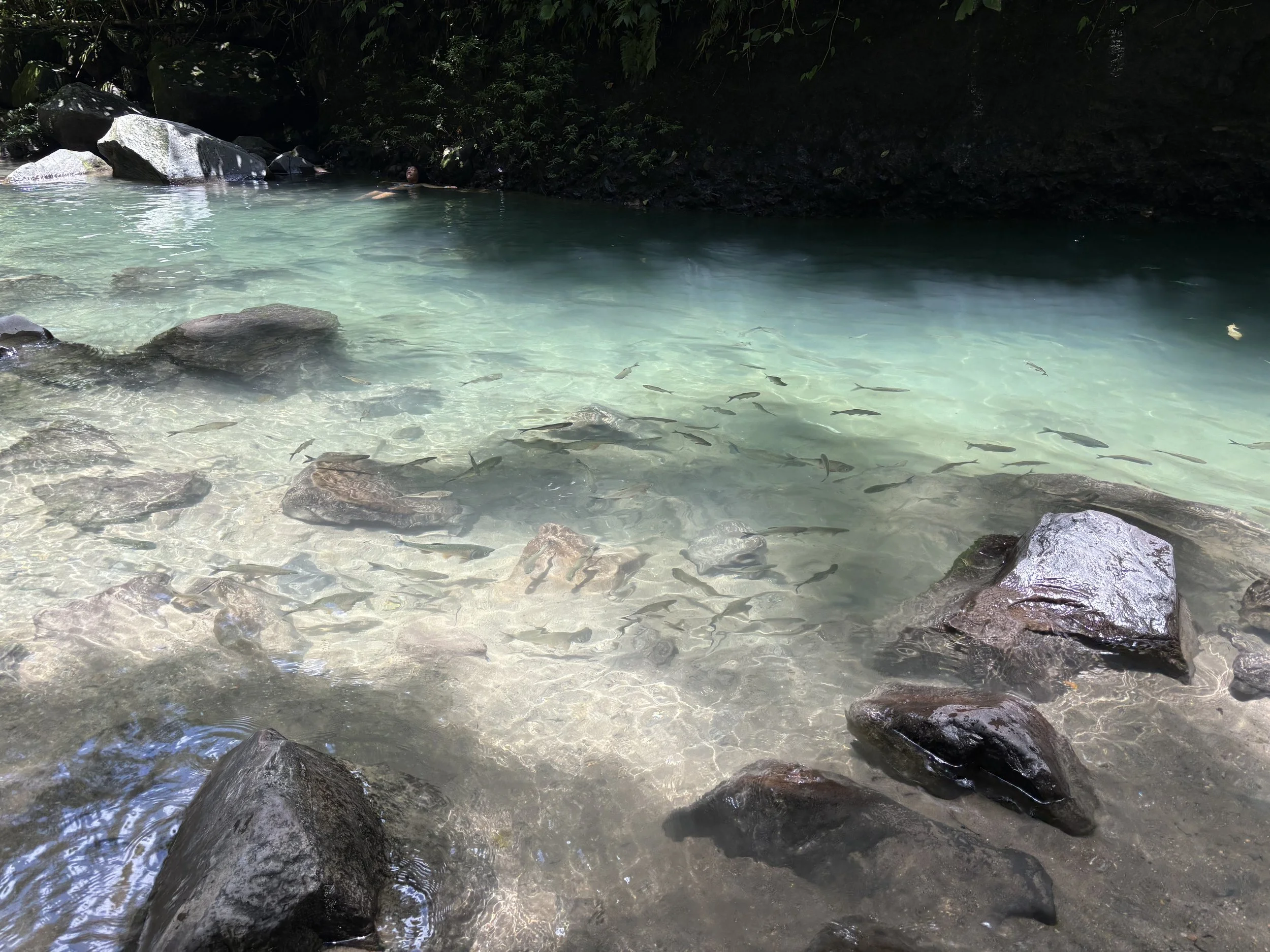 Behind the falls was a huge rock face covered in ferns, with long dangly vines reaching for the water. It wasn’t nearly as hot as I expected there, but we got in the water anyway. Because, Costa Rica!