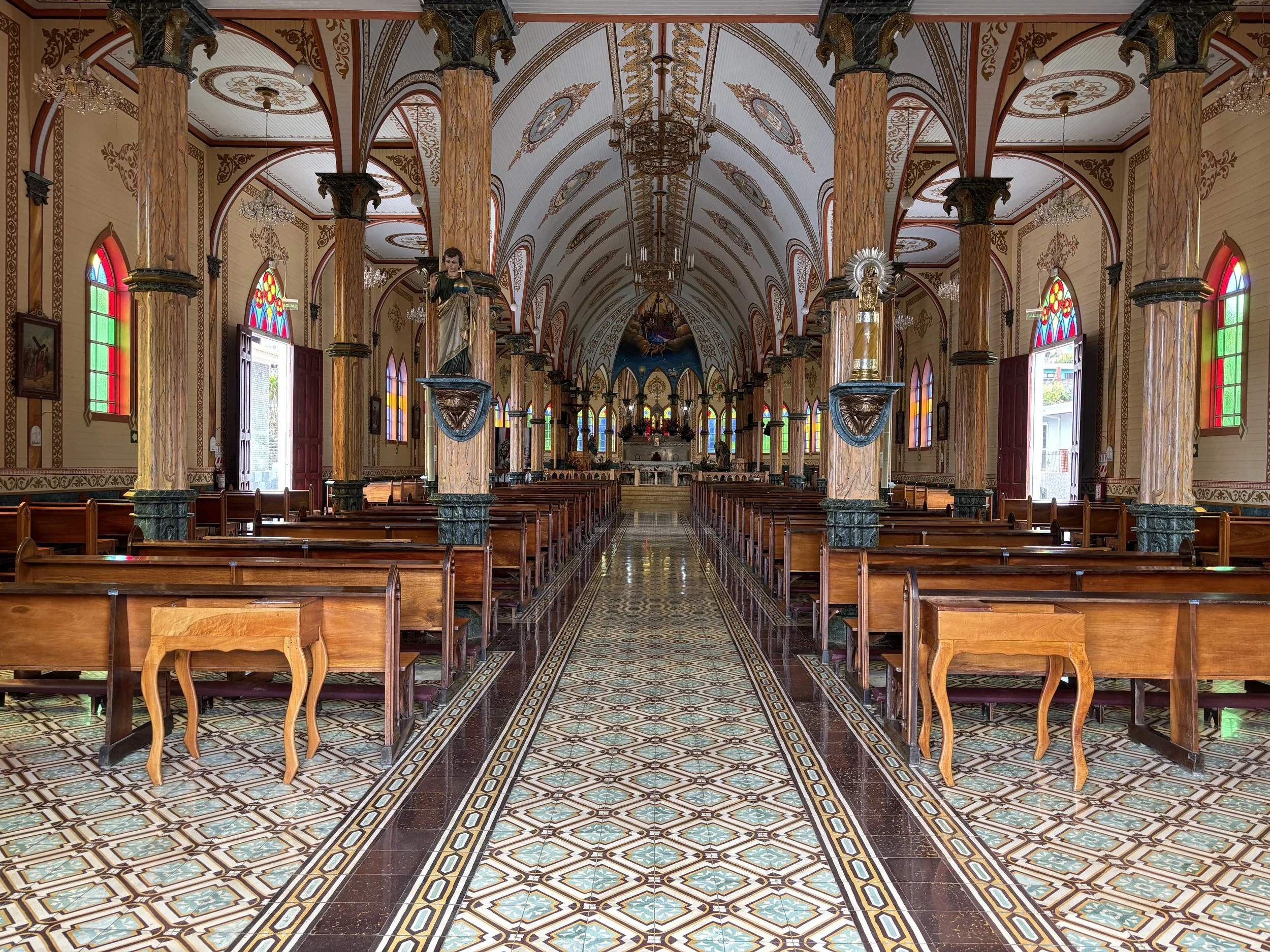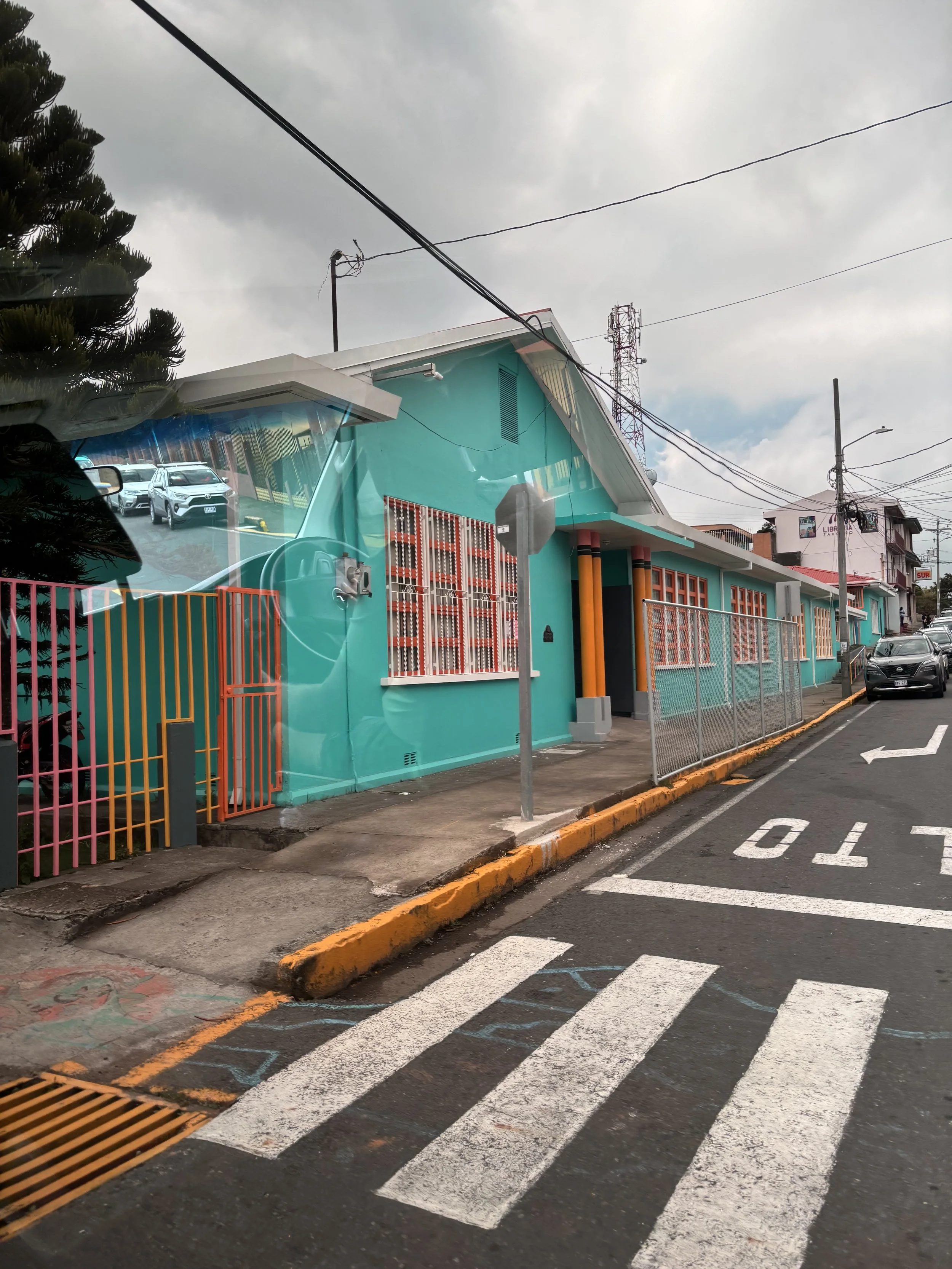 The doors to the Catholic Church stood open, so anyone could wonder in. I loved the colors on this elementary school—which made even the wrought-iron fence look inviting.